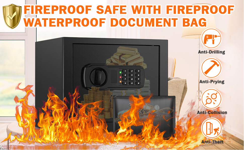 The GHJGAGE Fireproof Safe Box offers 1.2 cubic feet of secure storage with advanced fireproof and waterproof protection, featuring a tamper-proof digital keypad, emergency keys, and versatile mounting options. Designed for discreet, reliable safeguarding of valuables, it combines robust alloy steel construction with user-friendly features and a lifetime warranty for lasting peace of mind.