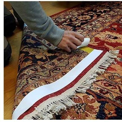 Tuloka Carpet Adhesive Tape Double Sided Rug Mat Runner Pad Tape, Anti Slip Non Skid Gripper Tapes, 66ft long and 1.97 Inches wide Safely Holds Rugs and Carpets Unique yellow glue and fibre mesh combined ensures a strong long lasting bond. The tape can prevent door mats from slipping, rugs from moving when you do hoovering and your child turning the carpet upside down by securing the rugs, runners, carpets and mats onto the floor. No Residue Left, No Harm on Floors The tape can comes off clean from the floor when you remove the adhesive and won't damage hardwood floor finishes or ruin the fabric at all. (Adhesive removal spray is recommended when removing the tape.) Quick and Easy to Install Quickly fix those annoying, slippy rugs and lose carpets quickly. Just tear to length by hand, stick down and remove from the easy peel backing to secure rugs and carpets in place. Surface Compatibility Easy for almost all surfaces like Tiles, marble, vinyl and any other indoor smooth surfaces; Wooden Finish and other delicate materials as well as Leather and other cloth-based materials. Wide Range of Applications to ✔ Adhere area rugs, carpet tiles in place onto existing carpets ✔ Hold carpets, runners, doormats, nursery rugs and pads, stair pads to floors and hardwood. ✔ Fix picture-framing ✔ Install golf grips. ✔ Protect your furniture from dogs/cats scratching ✔ Mount the plaques, signs, posters, decorations and more on doors and walls ✔ Keep toothbrush cup, soap dispenser from fallingPackage dimension: 13×13×5 cm / 5.1×5.1×2 InchWarranty This Tuloka Carpet Tape has 12-month money back guarantee. If it has initial failure or does not work afterwards, we'll give you 100% money back.Just give it a try!