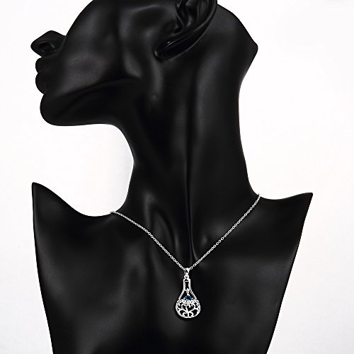 Women Light Blue Crystal Waterdrop Hollow Out Pendant Necklace Silver | Desertcart Sri Lanka