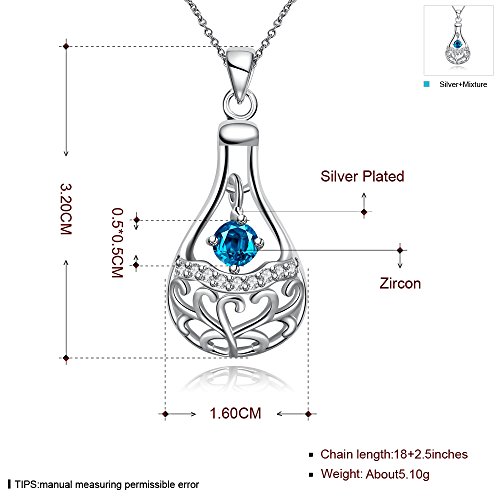 Material:Zircon Gender:Women Chain Type:Link Chain Necklace Type:Pendant Necklaces Length:18 +2.5inches Pendant Size:3.2X1.6CM Metal Color:Silver Plated
