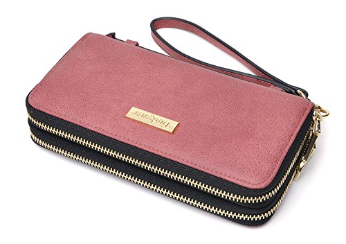 DIMENTION:7.5"(L) x 1.75"(W) x 4"(H) inches.WEIGHT: 0.5LB.MATERIAL:High quality faux leather and gold-tone hardware.Zipper works smoothly.Wrist strap is detachable STRUCTURE: 8 card slots,4 compartments and 1 coin pocket.Perfect fit an iPhone X Plus with an otterbox,credit cards,driver license,checkbook,cash,coin, passport and more. Double zipper design means you get 2 wallet in 1 with this multi-function piece RFID function to protect your information security without affecting your phone signal, Easy for your shopping and traveling PACKAGING:Comes with a presentation quality gift box 1-YEAR WARRANTY:If any problem occured in your purchasing or using the product, just contact our customer service team to get our 100% satisfying solution