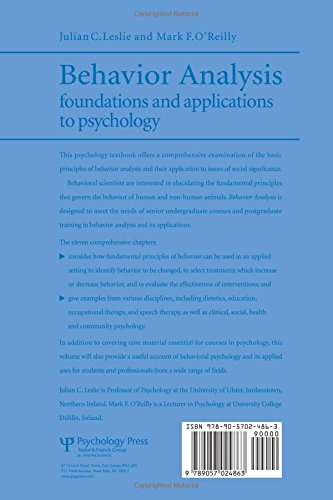 A comprehensive examination of the basic principles of behaviour analysis and their application to issues of social significance. It contains 11 chapters which consider how fundamental principles of behaviour can be used in an applied setting to identify behaviour to be changed, to select treatments which increase or decrease behaviour, and to evaluate the effectiveness of interventions and give examples from various disciplines, including dietetics, education, occupational therapy and speech therapy, as well as clinical, social, health and community psychology.