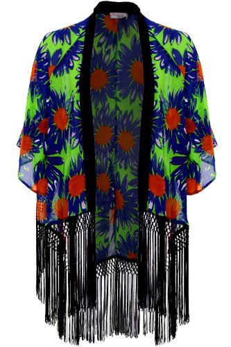 ![Ladies Flare Sleeve Chiffon Floral Print Open Front Tassel Women's Kimono Jacket [Blue/Lime Floral, L (UK 12-14)]](https://images-eu.ssl-images-amazon.com/images/I/512XAFmBsdL.jpg)
