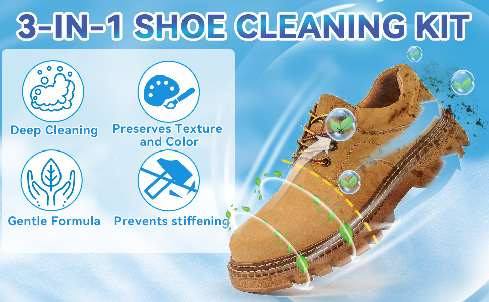 Suede and Nubuck Cleaner, 200ml Suede Cleaner with Suede Brush, Shoe Cleaner Removes Dirt & Stains, Trainer Cleaner Kit for White Shoes, Knit, Boots, Sneaker, Leather, Suede, Nubuck Cleaner