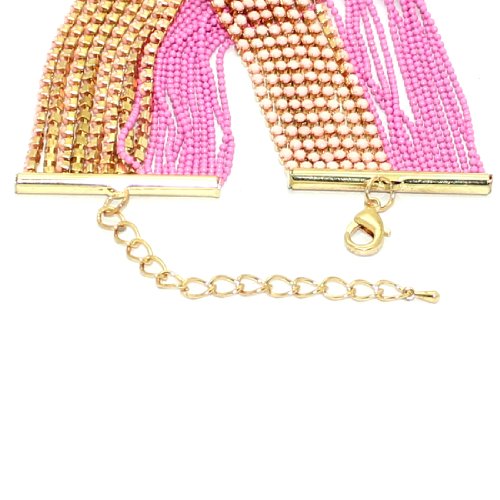 Very pretty piece of metal bracelet! Multi-row of plastic and metal beads consist a stylish bracelet. Lobster clasp provides adjustable length. Perfect design to you any outfit! PLEASE SEE MEASUREMENT IN THE PICTURES.