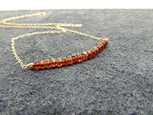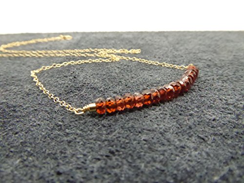 Red garnet bar natural gemstone necklace, January birthstone on gold fill chain with spring ring clasp. These twinkly faceted garnet rondelle beads are a wonderful colour and sparkle all over due to the tiny facets covering each and every bead. A beautiful, simple necklace perfect for a January birthday gift. Gemstones Size...... 3.5mm Metal...... 14k Gold Fill Necklace Length....... 18"