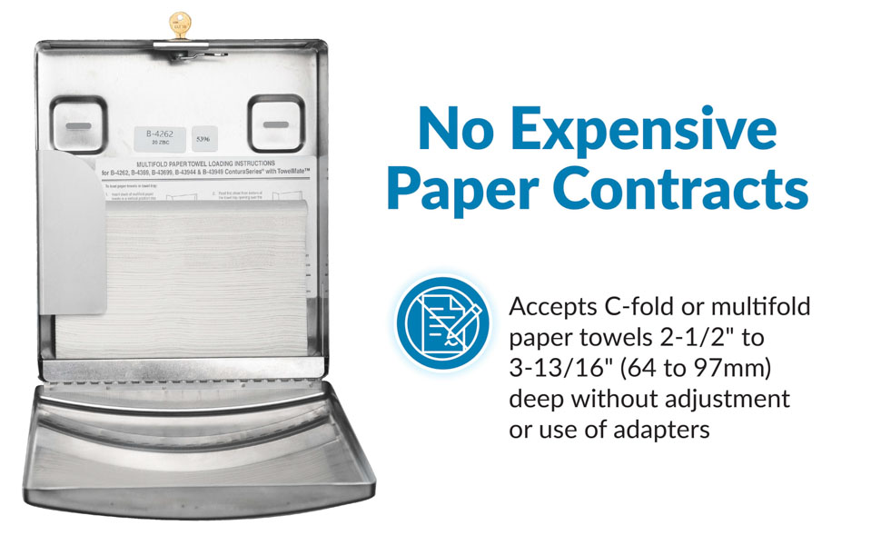 Bobrick B-4262 Contura Series Surface-Mounted Paper Towel Dispenser, Satin