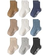 These socks are soft and comfortable, with a nice amount of stretch that makes them easy to put on without feeling too tight around the ankle. They stay in place well, which is important for active toddlers. The non-slip grips on the bottom are a big plus. They provide good traction on hardwood and tile floors, reducing the risk of slipping when little ones are learning to walk or running around. The grips have held up well after several washes, which is something I always check. The material feels breathable and lightweight but still warm enough for indoor play. The pack comes with a good variety of colors, and they seem to fit true to size based on the chart. Overall, these are practical socks for everyday wear. The grip feature adds safety for young kids, and the quality is good for the price.