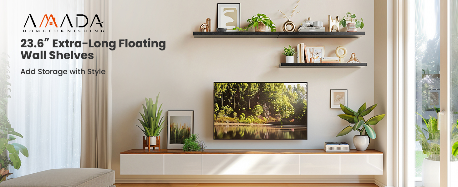- Sleek Floating Design: Elevate your style with AMADA’s floating shelves, ideal for living rooms, bedrooms, or office spaces. Designed with modern, minimalist sophistication, the concealed brackets of our wall shelves help to maximize wall space for a seamless, streamlined look.