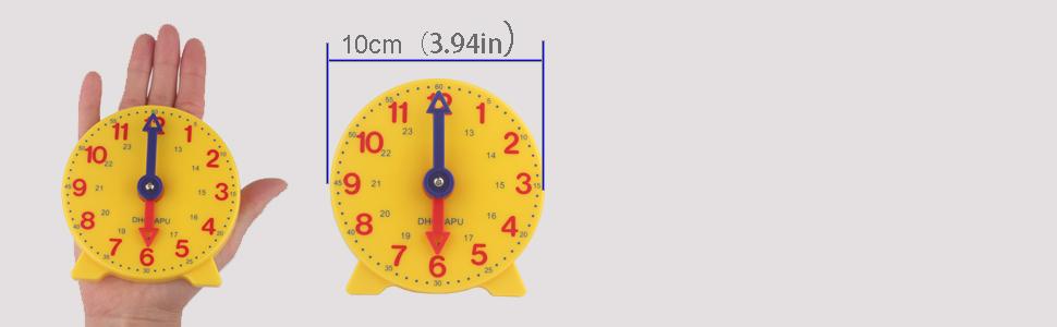 The DHCHAPU Pupil Clock is a compact, durable 10 cm learning tool designed for children aged 4 and up. Featuring a hidden gear mechanism that automatically advances the hour hand as the minute hand moves, it offers precise 1-minute increments and clear, color-coded hour and minute markings to simplify mastering both 12-hour and 24-hour time formats.