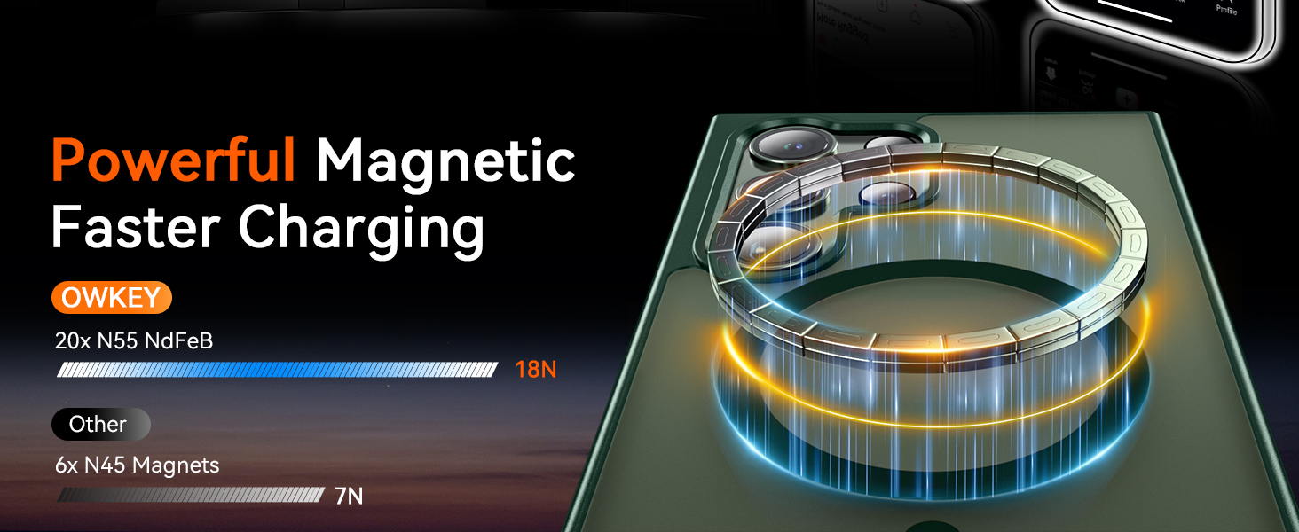 The OWKEY Magnetic Case for Samsung Galaxy S23 Ultra 6.8'' combines military-grade shockproof protection with a super-strong built-in magnet for flawless Magsafe wireless charging. Featuring raised edges for full camera and screen defense, a translucent matte finish with anti-slip grip, and precision cutouts, this slim bumper case offers premium durability and sleek style for the modern professional.