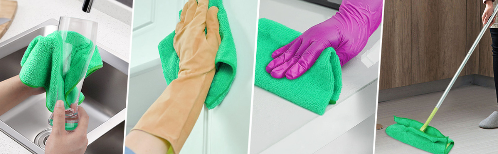 HOMEXCEL’s 12-pack premium green microfiber cleaning cloths deliver superior water and oil absorption with a soft, scratch-free touch. Sized at 11.5"x11.5", these reusable towels excel in versatile cleaning tasks—from cars to kitchens—while being machine washable for long-lasting performance.