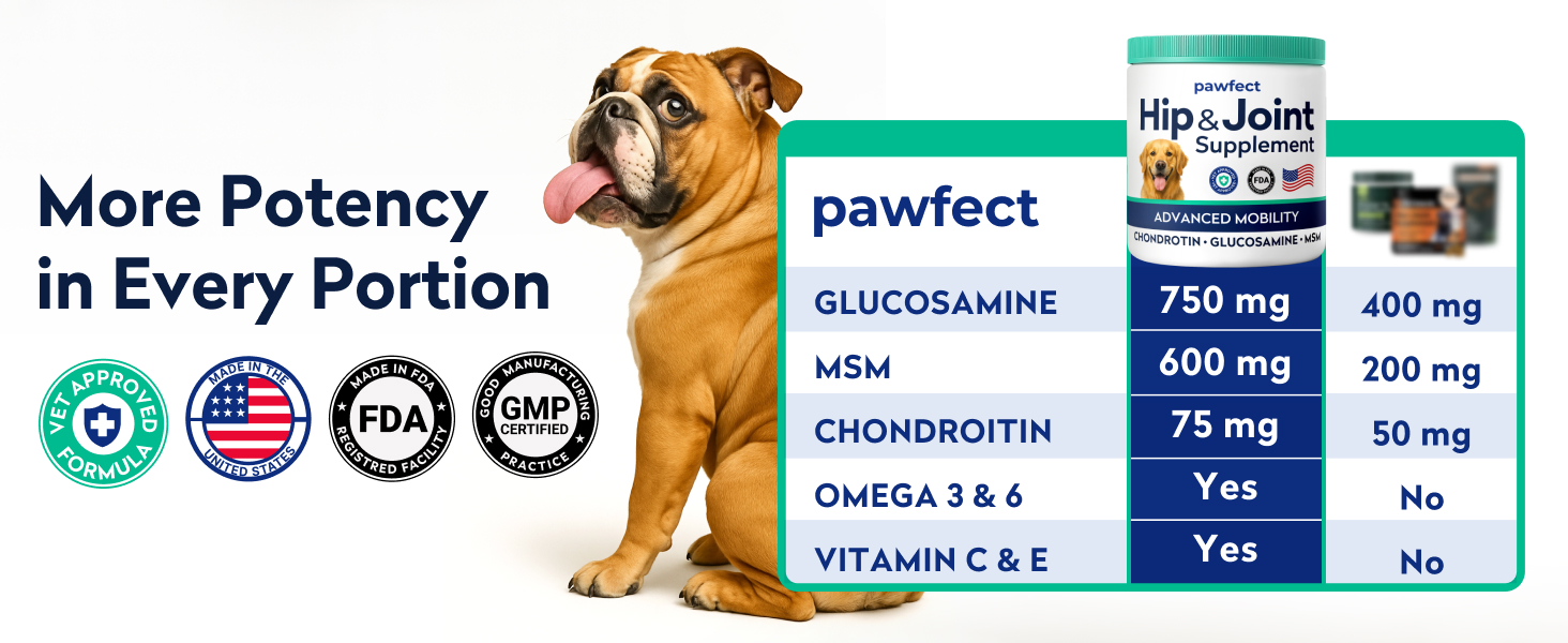 PAWFECTCHEW Pawfect Mobility Glucosamine Chews for Dogs - Hip & Joint Health Supplement Chews w/Omega-3, Chondroitin, MSM - Made in USA - Joint Pain Relief - Hip & Joint Care - 120ct