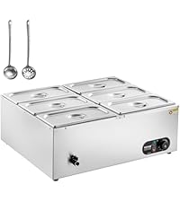 The VEVOR 9-Pan Commercial Food Warmer is a 1500W stainless steel steam table designed for professional catering and restaurant use. Featuring nine 8QT pans with lids, adjustable temperature control from 86-185°F, and safety features like a dry-burning indicator, it offers fast heating, lasting warmth, and easy maintenance in a durable, countertop-friendly design.