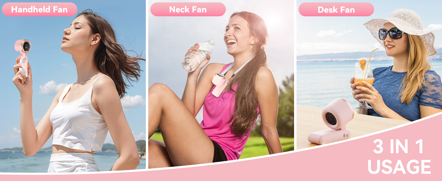Delivers the perfect breeze on command. Good size and the included strap supports wearing it around the neck. Bending the handle helps to find a good position.I was a little concerned about the noise level but it is definitely worth enduring to feel better.Battery level clearly displayed is an essential feature. Can be used while connected to the charger.