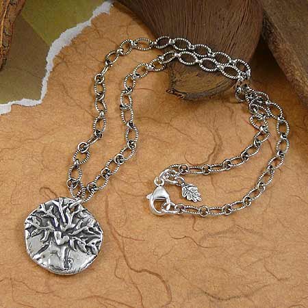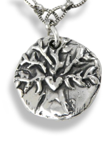 Crafted in California, this pendant bears the image of a branching tree of life embracing a sculpted heart. On the reverse, "Walk Boldly Grow Wise" is enthusiastically hand-carved, serving as a reassuring life lesson. The 1-inch-diameter pendant is plated in sterling silver, with at least 5x the amount of normal silver plating used to prevent wear and provide a higher quality standard. Pendant hangs from an 18" sterling-silver-plated link necklace with a unique ribbed texture. The necklace can be worn at a shorter length by clipping the clasp to any of the links on the chain. Includes double-plated sterling silver lobster-claw clasp and leaf charm. Made in the USA.
