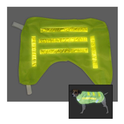 Bright neon lime doggie vest with reflective stripes - similar to ones worn by highway workers