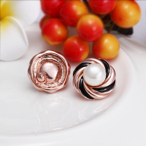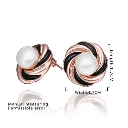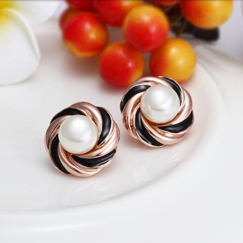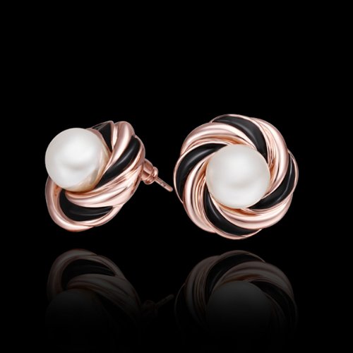 DUMAN 18k Rose Gold Plated Earrings Twisted Flower White Pearl Stud Earrings Health Jewelry Nickel Free